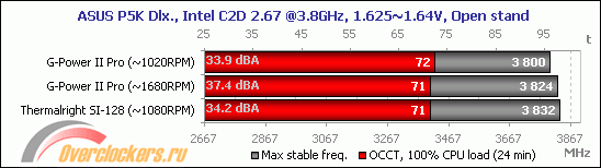 Преимущество Thermalright SI-128 очевидно, но не критично, тем более, что Gigabyte G-Power II Pro чуть-чуть выигрывает по уровню шума, о котором мы сейчас и поговорим.
