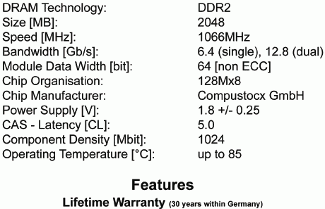 Остаётся добавить, что розничная стоимость комплекта CSXO-CEC-1066-2GB-KIT с учетом НДС рекомендована на уровне ~50 ЕВРО (~1750 руб.), что ощутимо ниже аналогов от других производителей.