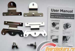 В комплект поставки кулера включены две пары креплений для Socket 754/939/940 и для Socket AM2, четыре шпильки и инструкция по установке кулера: