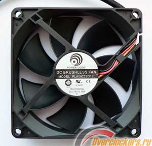 На радиаторе установлен вентилятор типоразмера 92 х 92 х 25 мм производства компании Power Logiс (модель PLA09225D12L):