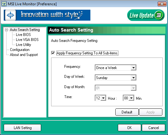 Даже по названию программы Live Update понятно, что она ищет в Интернет обновления BIOS. Оказалось, что помимо материнской платы она может находить обновления для видеокарты и установленных утилит MSI.
