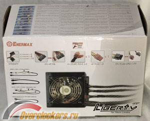 Блок питания от Enermax - Liberty DXX мощностью 500Вт поставляется в красочной коробке, которая, как и у старшего собрата Galaxy, не имеет удобной ручки для переноски.