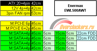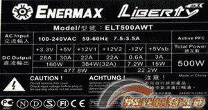 Наклейка с техническими параметрами линий блока выполнена в обычном для Enermax стиле и не содержит противоречий с официальной спецификацией на сайте производителя.
