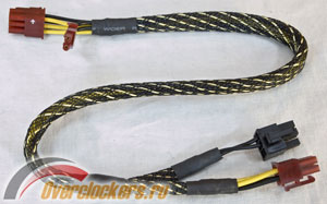 Блок имеет один 8-контактный (с отстегиваемой 2-контактной частью) разъем для питания PCI-Express видеоадаптеров. Для подключения этого кабеля потребуется два модульных разъема на блоке – периферийный черного цвета и PCI-Express.