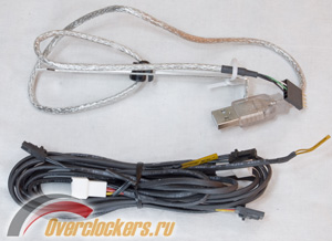В комплекте поставляются термодатчики и брекет с кабелем USB. Что помешало оснастить блок питания, который устанавливается внутри корпуса ПК, внутренним же разъемом с колодкой USB, для прямого подключения к материнской плате – непонятно. В качестве микроконтроллера был использован 8-битный RISC Elan EM78M611. Он имеет довольно богатое оснащение (24-канальный 10-бит АЦП, встроенный USB-порт, 8-битный таймер, два ШИМ-канала) и имеет 6 килобайт встроенной памяти для программы. Подобные контроллеры уже были замечены в системах фреонового охлаждения Asetek Vapochill и Chip-con Prometea.