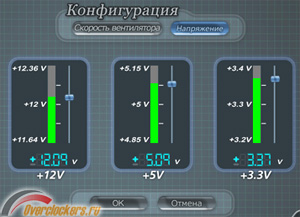 Оверклокерам придется по нраву функция регулировки основных напряжений, выдаваемых блоком питания прямо из среды Windows, на лету. С помощью этой опции можно подстроить блок довольно точно, правда придется все же вооружиться мультметром для замера действительных напряжений.