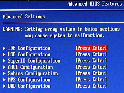 Дело даже не в том, что он содержит много неизвестных опций, хотя и такое встречается. Самые обычные параметры BIOS названы по-новому, иначе скомпонованы и распределены по разделам. К примеру, вот список подразделов страницы Advanced BIOS Features: