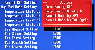 Формально мы можем зафиксировать скорость вращения двух вентиляторов на нужных значениях или предоставить плате право автоматически изменять обороты в зависимости от температуры. Однако в данном случае Foxconn лишь пускает пыль в глаза, поскольку для трёхконтактных вентиляторов эти возможности неработоспособны.