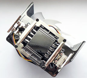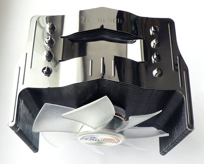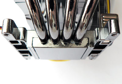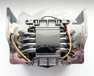 покрытые никельсодержащим сплавом 44 алюминиевые пластины на четырёх медных тепловых трубках диаметром 6 мм и медном основании |