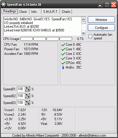 Все тесты были выполнены в операционной системе Windows XP Professional Edition SP2. Для мониторинга температуры процессора использовалась утилита мониторинга SpeedFan версии 4.34 Beta 38, поддерживающая считывание показаний температуры непосредственно из регистров процессоров (Core Sensor's):