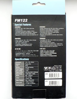 Следующий вентилятор также поставляется под маркой SilverStone. Модель FM122 предлагается покупателю в точно такой же коробке, как и у FM121: