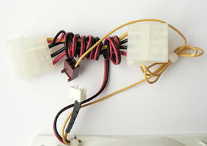 Как видно, питание на вентиляторы моделей FM121 и FM122 подается непосредственно от блока питания через разъём Molex-типа. Кроме того, от вентилятора отходит один провод тахометра оборотов и двухконтактный разъём для подключения регулятора оборотов, который выполнен в виде встраиваемой в 3.5" отсек панельки, которую вы могли видеть выше.