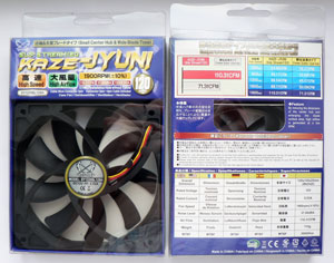 Все вентиляторы упакованы в прозрачные пластиковые коробки с картонной вставкой внутри, немного отличающейся цветом для каждого вентилятора: