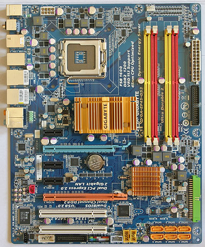 Как и ожидалось, выглядит Gigabyte GA-EP45-DS3 как самая обыкновенная материнская плата, без удивительных достоинств и вопиющих недостатков.