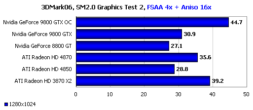 Предположение подтвердилось: разогнанный Nvidia GeForce 9800 GTX сумел опередить ATI Radeon HD 4870 именно в тестах SM2.0, но даже в этом случае она оказалась крайне незначительной. В тестах SM3.0/HDR решение ATI осталось вне конкуренции.