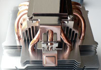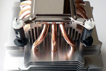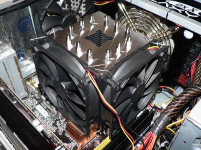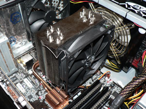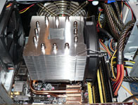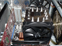 И действительно, как показали результаты тестирования, такая "перекрёстная" установка вентиляторов на радиатор позволяет работать кулеру с двумя вентиляторами на 2-3 градуса эффективнее, чем при последовательной установке пары вертушек. Причем, это наблюдалось как внутри корпуса системного блока, где двум вентиляторам на радиаторе помогали 120-мм корпусный вентилятор и 135-мм вентилятор в блоке питания, так и на открытом стенде, где трудились только вентиляторы Scythe NINJA 2.
