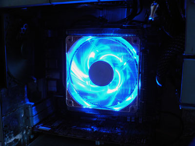Вентилятор TITAN CoolIdol закрыт сверху проволочной решёткой, дабы случайно не повредить оверклокерские пальцы. EVERCOOL Transformer 6 такой решётки не имеет, зато его вентилятор оснащён четырьмя светодиодами синей подсветки: