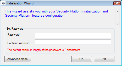 - Мастер инициализации пользователя Security Platform;