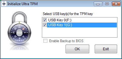 Просто? Конечно, просто! Просто, только как-то скучно... Но даже в этом случае нам поможет Gigabyte Ultra TPM Utility. Вместо того, чтобы уныло раз за разом вводить пароль (его, кстати, можно и запомнить в программе, но тогда это уже не очень секретно), утилита предложит нам записать ключ на USB Flash Drive. Причём не на один, а, как минимум, на два одновременно. Вероятно, это связано с безопасностью данных. Флешки имеют неприятное свойство неожиданно выходить из строя. Если такое произойдёт, и не будет резервной копии, то все сохранённые на секретном диске данные окажутся утеряны – слишком надёжны алгоритмы шифрования.