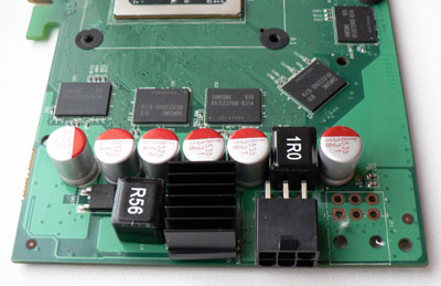 Видеокарта оснащена 8 чипами памяти стандарта GDDR3 общим объёмом в 512 Мбайт. Ширина шины обмена с памятью видеокарты равна 256 Бит. Все микросхемы расположены веерообразно на лицевой стороне платы. Производитель микросхем – компания Samsung:
