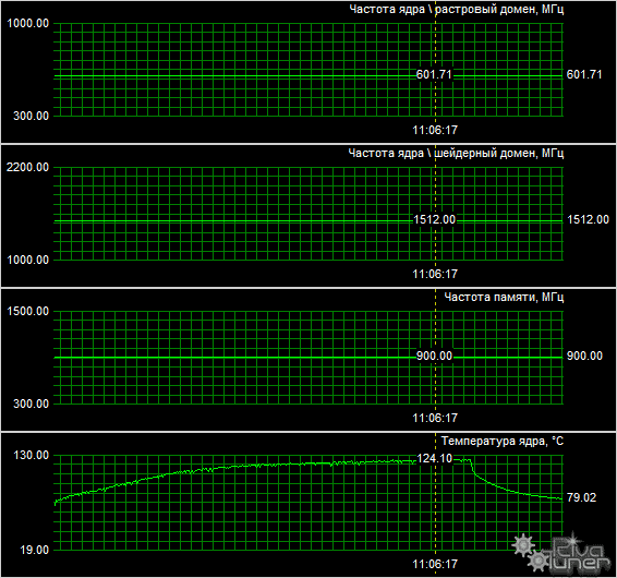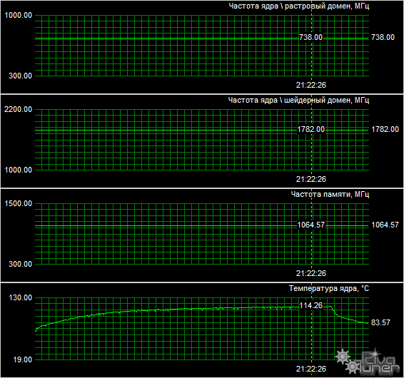 При этом температура GPU в пике нагрузки выросла до 114 градусов Цельсия, что также, скорее всего, далеко от действительности: