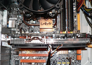 В остальном же никаких проблем не возникло. Соседний к видеокарте PCI слот на материнской плате оказывается перекрытым, да и следующий, как и у других участников тестирования, желательно оставлять свободным.