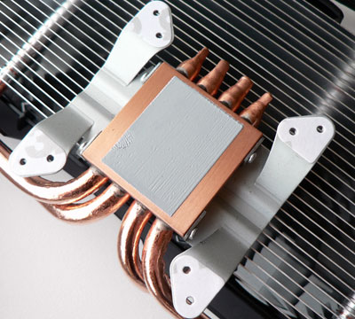 В основе конструкции четыре медных тепловых трубки диаметром 6 мм, выходящие из медного основания: