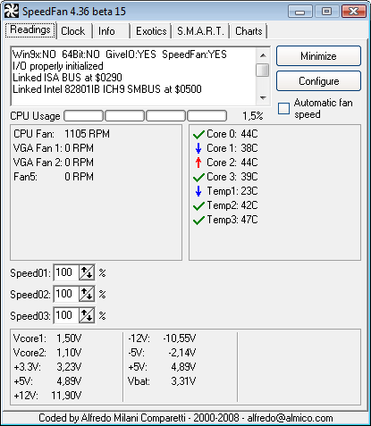 Все тесты были выполнены под операционной системой Windows Vista Ultimate Edition x86 SP1. Для мониторинга температуры процессора, а также скорости вращения вентиляторов использовалась утилита SpeedFan версии 4.36 beta 15, считывающая температуру непосредственно из регистров процессора: