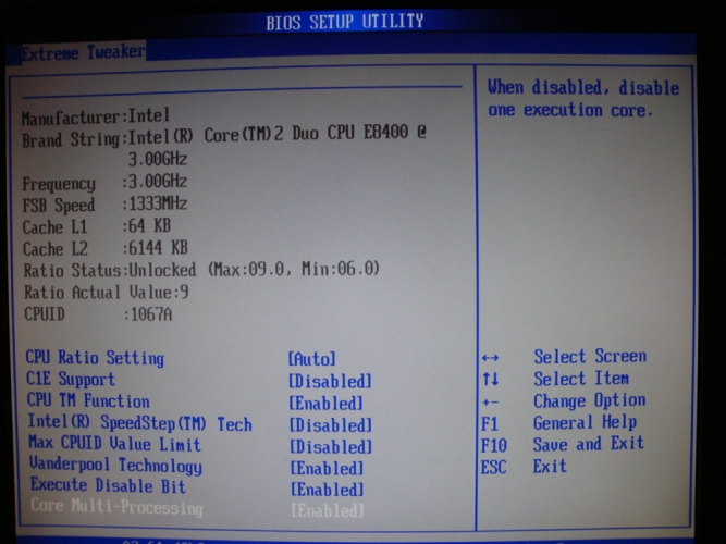 БИОС материнской платы Asus Rampage Extreme основан на коде AMI. Все функции, интересные оверклокерам, содержатся в первом же разделе под названием Extreme Tweaker. Здесь присутствуют функции автоматического разгона процессора, например, для процессора E8400 есть варианты разгона до уровня E8500 или E8600: