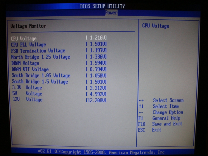 Очень широкие диапазоны изменения напряжений с очень маленьким шагом. Если плата считает, что напряжение довольно высокое, она выделяет его значение желтым цветом, при дальнейшем увеличении – красным. Плюс на материнской плате радом с основными компонентами находится по три светодиода зеленого, оранжевого и красного цвета с подписями «Normal», «High» и «Crazy». Если напряжение установлено в безопасных пределах, то горят зеленые светодиоды, при увеличении напряжения до «желтых», т.е. относительно безопасных значений, на плате загорается оранжевый светодиод, а при значительном увеличении напряжений до опасных значений даже плата понимает, что мы сумасшедшие, и загорается светодиод с надписью «Crazy». :)