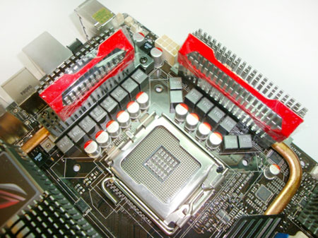 Я извиняюсь за скриншот из валидатора, просто во времени я был сильно ограничен, а после проведения тестов мысль о скриншоте вылетела из головы… Система охлаждения отлично справилась с нагревом чипсета, при этом температура северного моста не поднималась выше 52 градусов (с установленным дополнительным турбинным вентилятором на радиатор мосфетов питания). Материнская плата Rampage Extreme должна работать на больших частотах, возможно для этого она потребует еще большего повышения напряжения на чипсете, но это не будет причиной ограничения разгона, так как система охлаждения должна прекрасно справляться со своими обязанностями.