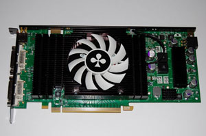 Разбавить дружную компанию выходцев из Канады, летом 2006 года перебравшихся под лейбл AMD, было решено видеокартой зеленых калифорнийских кровей производства Club3D - GeForce 8800GT 512 Мб. Сразу хочу сказать, что именно "сама" эта видеокарта GeForce 8800GT производства Сlub3D, еще встречающаяся в продаже до сих пор, является наихудшим представителем серии карт 8800GT, виденных мной более чем за год общения с этими видеокартами, и представляет из себя "пример" того, какой видеокарта не должна быть ни при каких условиях. В наличии гулкий вентилятор, без возможности регулирования скорости оборотов, ужасный ребристый кусок алюминия, называемый радиатором, с налепленными прокладками для памяти, но ни одним местом не касающийся ее, и отсутствием хоть какого-то намека на термоконтроль карты, даже GPU. Кроме того разочаровал и разгонный потенциал. Такого низкого разгона 8800GT из десятка виденных мною устройств, как референсного, так и оригинальных дизайнов, я не видел. Карта оказалась способна работать на частотах 650(1566)/1900. Именно поэтому ее одну было решено протестировать на номинале - 600(1512)/1800. Но это не значит, что сама видеокарта плоха. Она верой и правдой вот уже 6 месяцев работает в компьютере моего старого знакомого. В продаже эту видеокарту производства Club3D можно встретить за сумму на 15$, или 12 евро, меньшую, чем карту HD4830-512 этого же производителя.