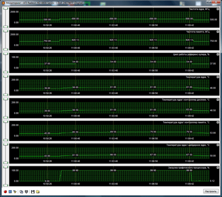 В разгоне GPU, при использовании родной системы охлаждения, прогревался до 60 градусов при скорости вращения вентилятора кулера 54%, что в нынешние времена весьма умеренный показатель.