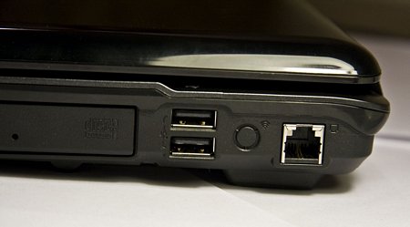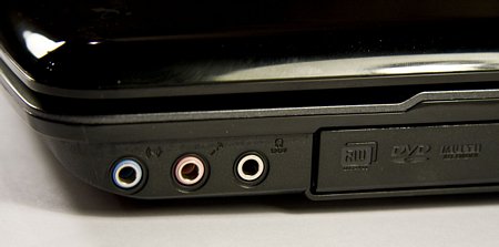 Да, кстати, а что у нас справа? Во-первых, старый добрый модемный RJ-11 (да, а вдруг случится что-то страшное, и вам понадобится модемная связь?), окошко ик-порта, 2 разъёма USB, лоток DVD-рекордера (который, впрочем, может быть заменён на BD-рекордер в некоторых конфигурациях) и 3 стандартных аудио-разъёма (разъём для внешних динамиков\наушников, линейный аудио-вход и разъём для микрофона). Хотелось бы поругать расположение портов USB друг над другом, а не в ряд. Мне не удалось вставить в них USB-флэшку и мышь одновременно. Не очень серьёзное упущение, но, признайтесь, это может помешать работе.
