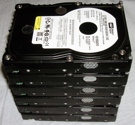 - Жесткие диски: 6 х WesternDigital Raptor 150GB 10.000rpm или (2ой вариант) 2 x 200GB Seagate ST3200827AS + 1 x WesternDigital RaptorX 150GB 10.000rpm