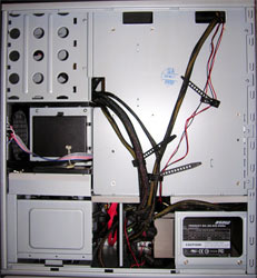 Что касается остального, то в сборке присутствуют и приятные моменты. Один из них - это уже упомянутые выше предустановленные стойки под материнскую плату. Очень важным является, то, что в корпусе уже предусмотрены все вещи для "красивой" укладки кабелей. Вам необходимо лишь грамотно использовать их – и никакой доработки напильником и дремелем не потребуется. Однако, несмотря на это, на укладку проводов придется потратить достаточно времени, так что запаситесь терпением перед началом этой процедуры. Скорее всего, несколько раз Вы будете начинать сборку сначала или возвращаться на пару шагов назад, в процессе поиска решения, как можно более удачно проложить и закрепить провода. Если вы собираете систему в магазине, то, конечно, можно свалить эту работу на сборщика, но при этом придется заинтересовать его или проследить за работой, чтобы все было сделано в лучшем виде.