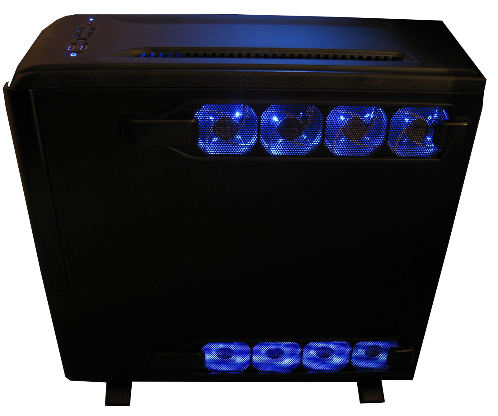 На левой стенке корпуса имеются две большие вентиляционные решётки, вместо которых можно установить прилагающееся в комплекте поставки оргстекло, правая же стенка оснащена двумя батареями из четырех вентиляторов диаметром 80 мм. Нижняя батарея предназначена для подачи холодного воздуха, верхняя – для вывода горячего.
