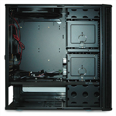 Внутри боковые панели имеют выштамповку и неокрашены. Это единственные светлые поверхности на всем корпусе, и по моему скромному мнению они несколько смазывают впечатление от стильного черного внутреннего дизайна.