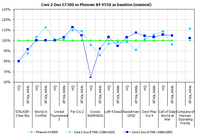 - Core 2 Duo E8200 and Core 2 Quad Q6600 vs Core 2 Duo E7300 as baseline (nominal)
