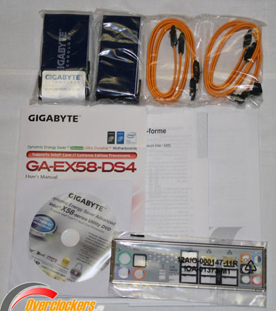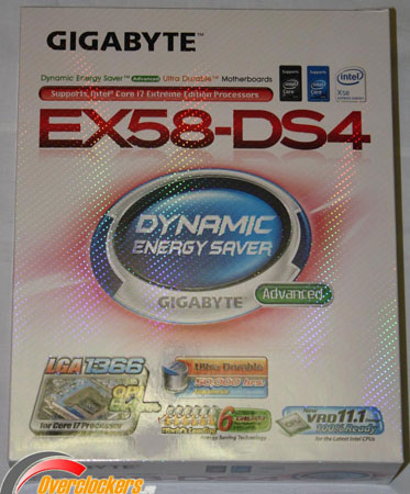 Материнская плата Gigabyte EX58-DS4 поставляется в небольшой коробке белого цвета: