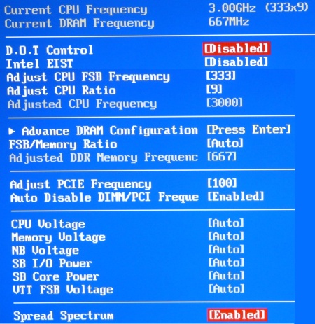 Технология энергосбережения EIST работает корректно и позволяет в моменты простоя уменьшать множитель процессора и подаваемое на него напряжение. Данная технология сохраняет свою работоспособность при разгоне процессора. Ее отключение позволяет получить доступ к управлению множителем CPU.