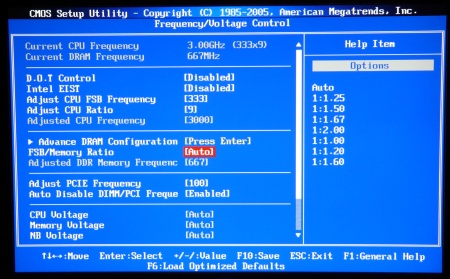 При изменении делителя памяти или частоты системной шины в полях Adjusted DDR Memory (CPU) Frequency всегда можно увидеть результирующую частоту.