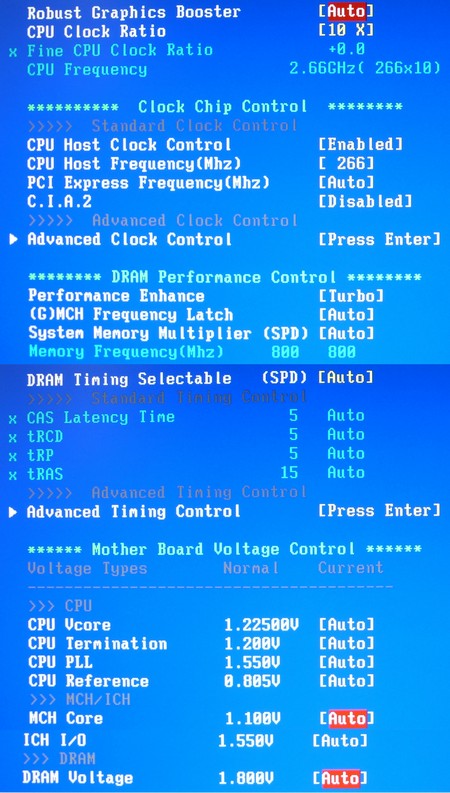 Он разбит на несколько подгрупп. В первой можно найти параметры, позволяющие управлять частотами шины FSB (максимально-возможная частота составляет нереальные 1200(!) МГц) и PCI-E, а также системой автоматического разгона C. I. A. 2.