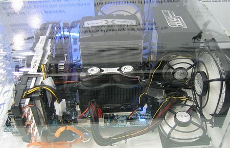 Ассортимент продукции на стенде Arctic Cooling Switzerland AG был представлен не только до недавнего времени производимыми компанией компьютерными корпусами, блоками питания , системами охлаждения для центральных процессоров и видеоускорителей, но и системой охлаждения портативных компьютеров и оперативной памяти.