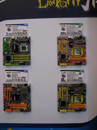 Предлагаю взглянуть на стенд тайваньского производителя материнских плат для геймеров, оверклокеров и энтузиастов DFI. Компания вот уже больше 26 лет занимается производством материнских плат; посмотрим, что они предложили нам на этот раз: