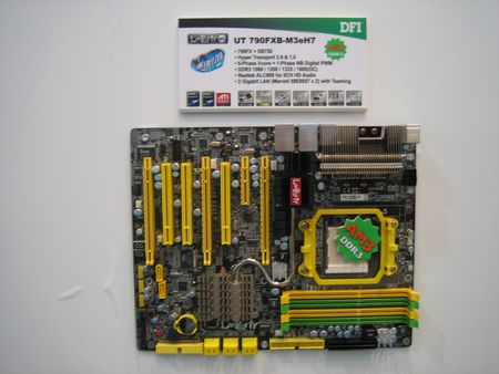 Флагман для платформы AMD Dragon (Socket AM3) - плата DFI UT 790FXB-M3eH7. Плата основана на чипсете AMD 790FX в паре с южным мостом SB750. Она, как и другие топовые продукты от DFI, оснащена шестифазной схемой питания процессора; ещё одна фаза обеспечивает питание северного моста. Официально заявлена поддержка двухканальной памяти DDR3 вплоть до 1600МГц, а так же технологии CrossfireX. На плате размещены восемь портов SATA-II, три гнезда для шести портов USB 2.0, IDE интерфейс, два контроллера 88E8057 гигабитного сетевого интерфейса RJ45 производства Marvell. Восьмиканальный звук обеспечивает HD-кодек Realtek ALC889. Слоты расширения представлены тремя PCI, одним слотом PCI Exprexx 4x и тремя PCI Express 2.0 x16.