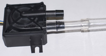 На вход и выход помпы были натянуты кусочки шланга 14х10мм, и уже поверх них - 15,9/12,7мм. Для использования подобной системы в режиме 24\7 настоятельно рекомендую вам засунуть узкий шланг поглубже и не пренебрегать использованием пластиковых стяжек или хомутов.