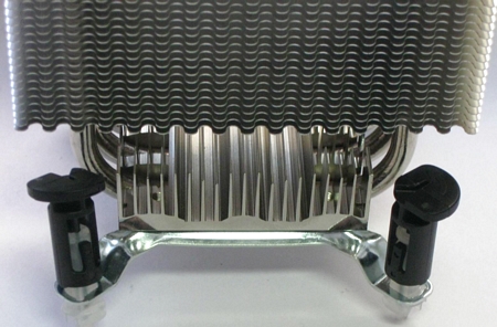 Кроме того, основание кулера несет на себе небольшой алюминиевый радиатор с 19-ю ребрами переменной высоты.