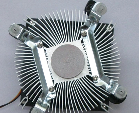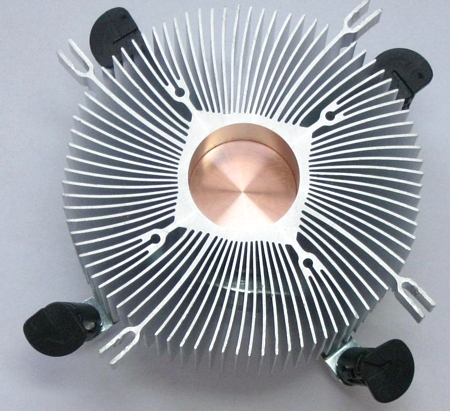 Основанием радиатора служит подошва медного стержня-сердечника, от которого отходят алюминиевые ребра.