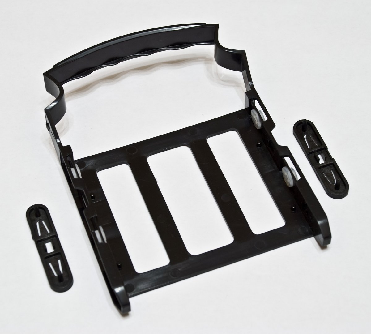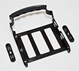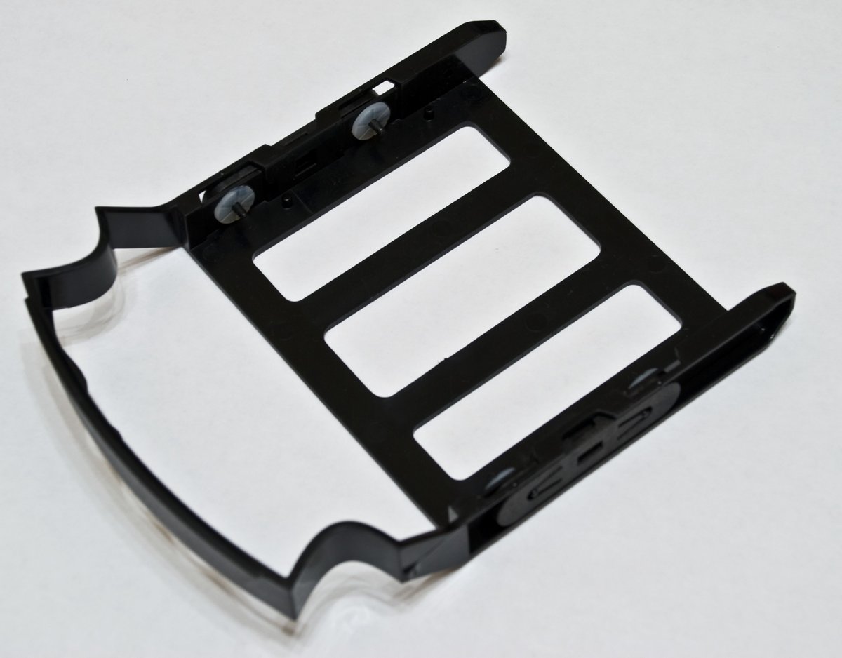 Сам пластик салазок «мягкий», внешняя ручка с приливами под пальцы и прокладками с клипсами фиксации HDD. 15 секунд достаточно для установки и снятия привода. Очень удобно и незамысловато, как в природе. Чем проще конструкция, тем дольше она служит. Единственно НО. Перевернуть зеркально HDD невозможно!